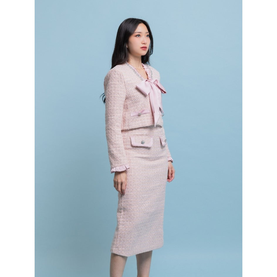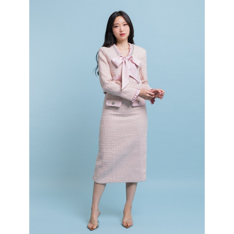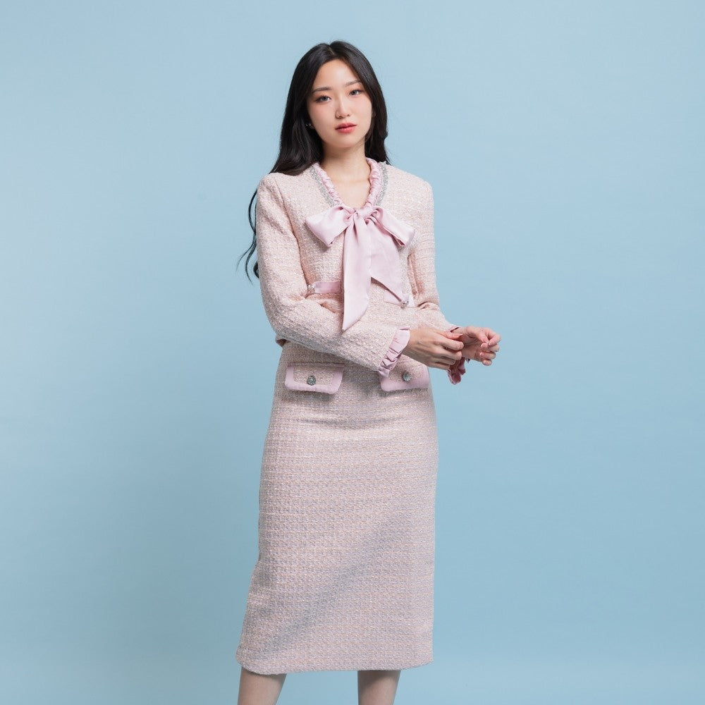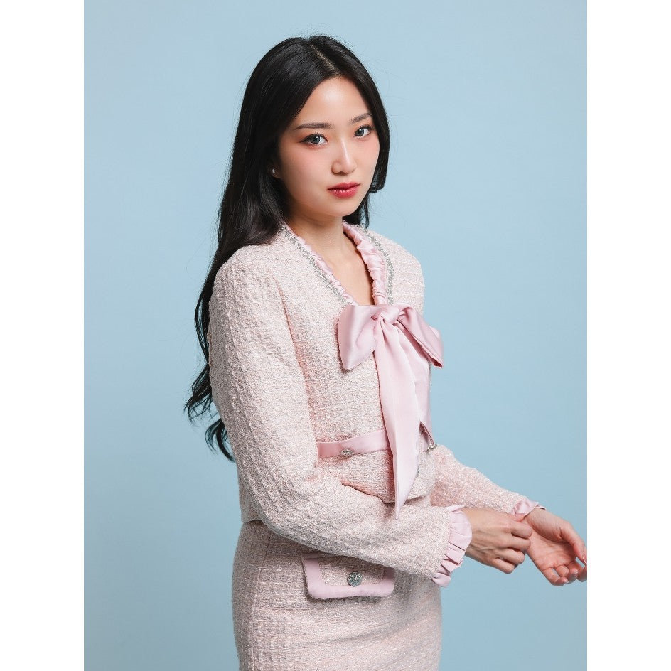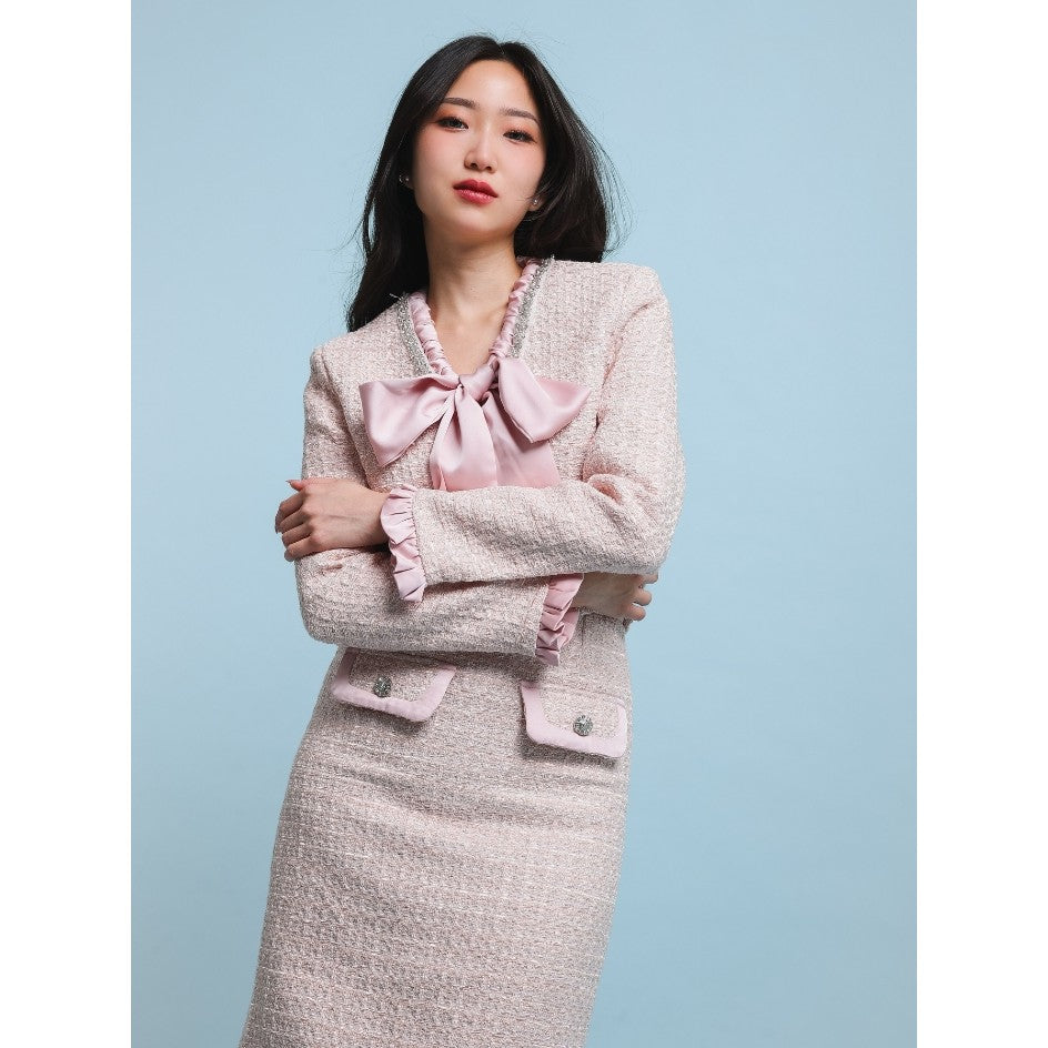 Tampil catchy dengan Nadelyn Ribbon Tweed Oneset. Oneset berbahan tweed tebal dengan detail pita dan kristal yang cantik. Dirancang untuk style yang modis dan kekinian, sempurna untuk acara formal maupun non-formal.