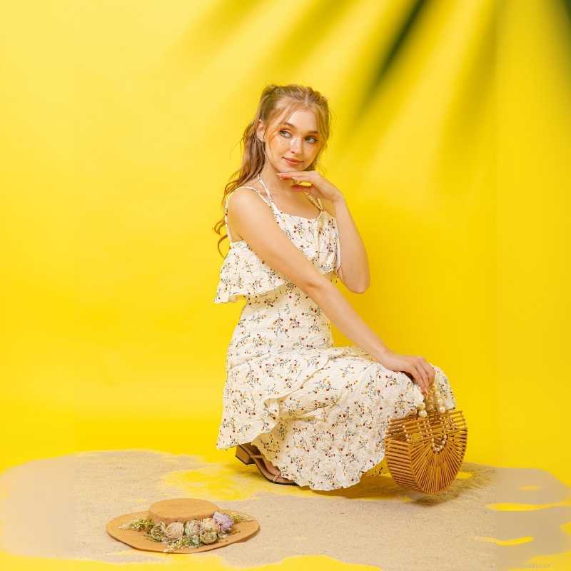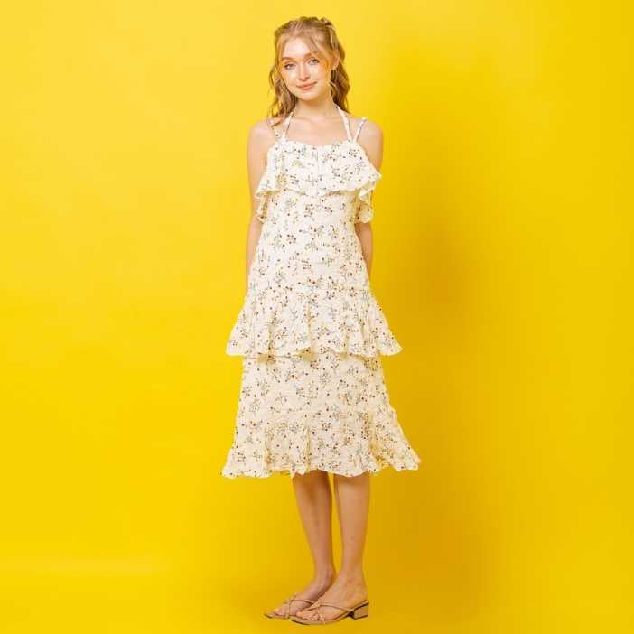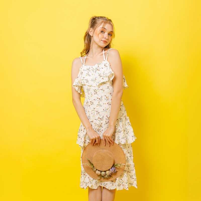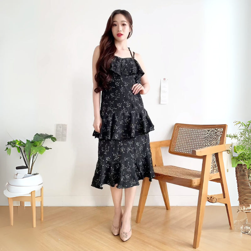 Alicia Couture - Yorica Flower Dress -Dress Pantai Midi Motif Bunga - Summer Dress Korea Style