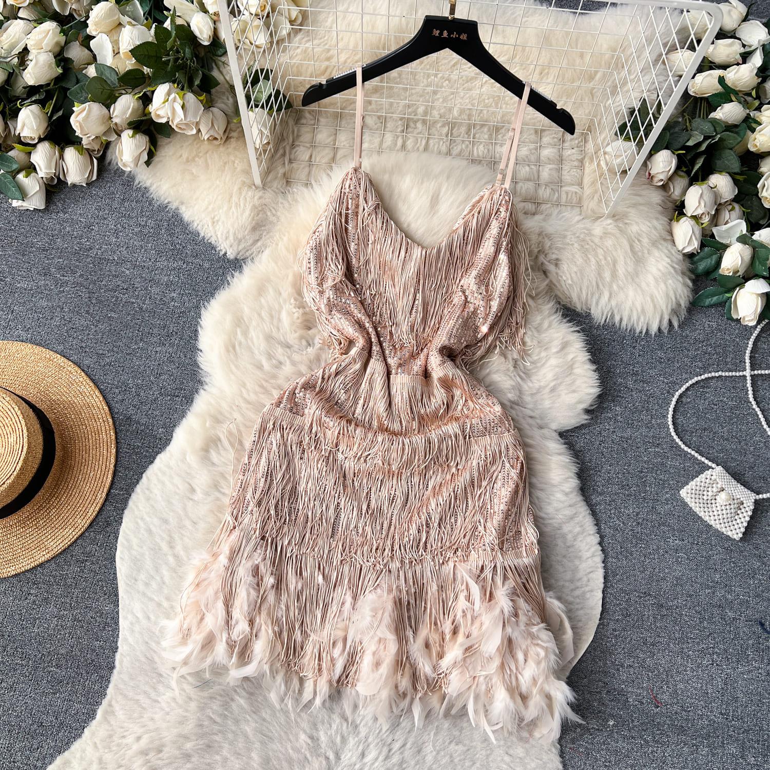 Tampil menarik dengan Maguire Party Dress. Dress party berbahan sequin dengan detail rumbai bulu yang unik. Menambah kesan feminin dan kemewahan. Dirancang untuk style yang modis dan kekinian, sempurna untuk acara formal maupun non-formal.