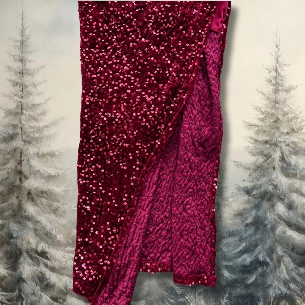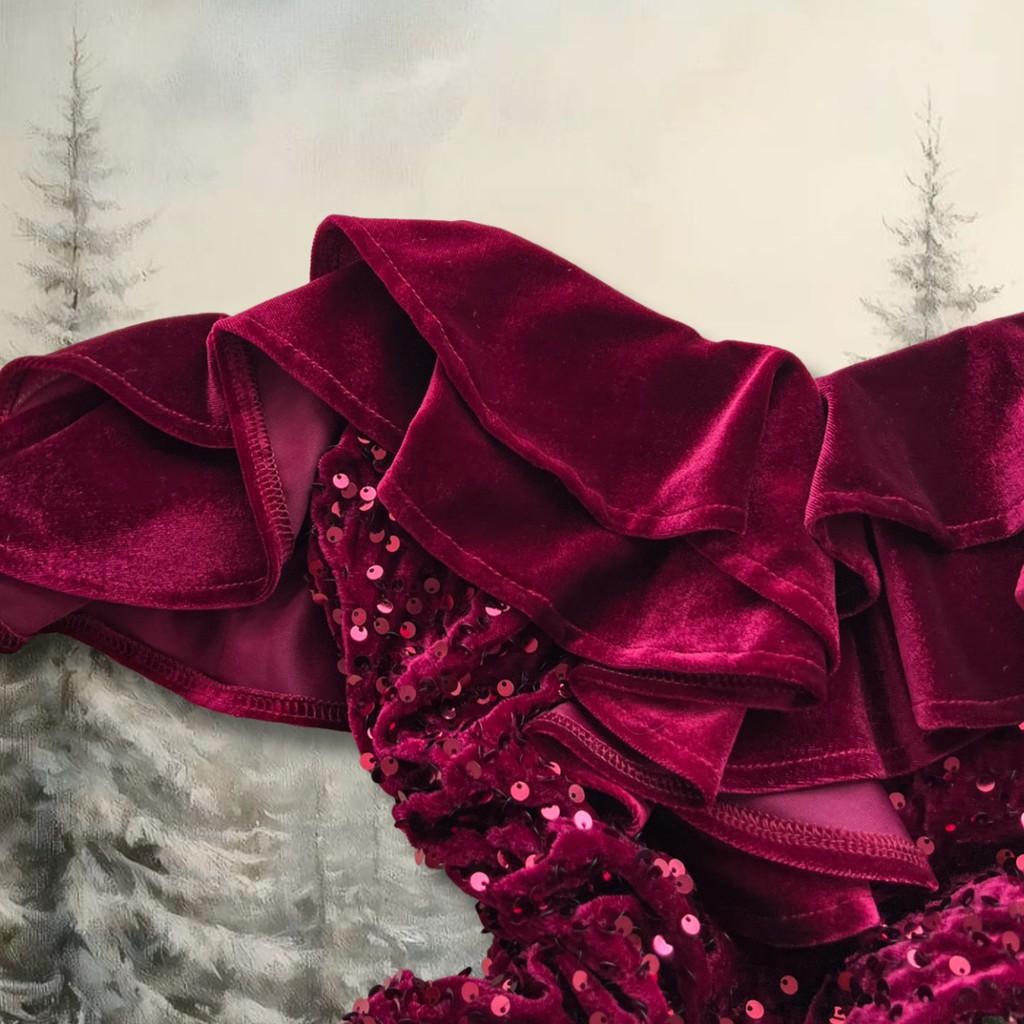Aliciacouture - Camille Sequin Party Maroon Dress - Party Dress Velvet Mewah Premium Full Payet
