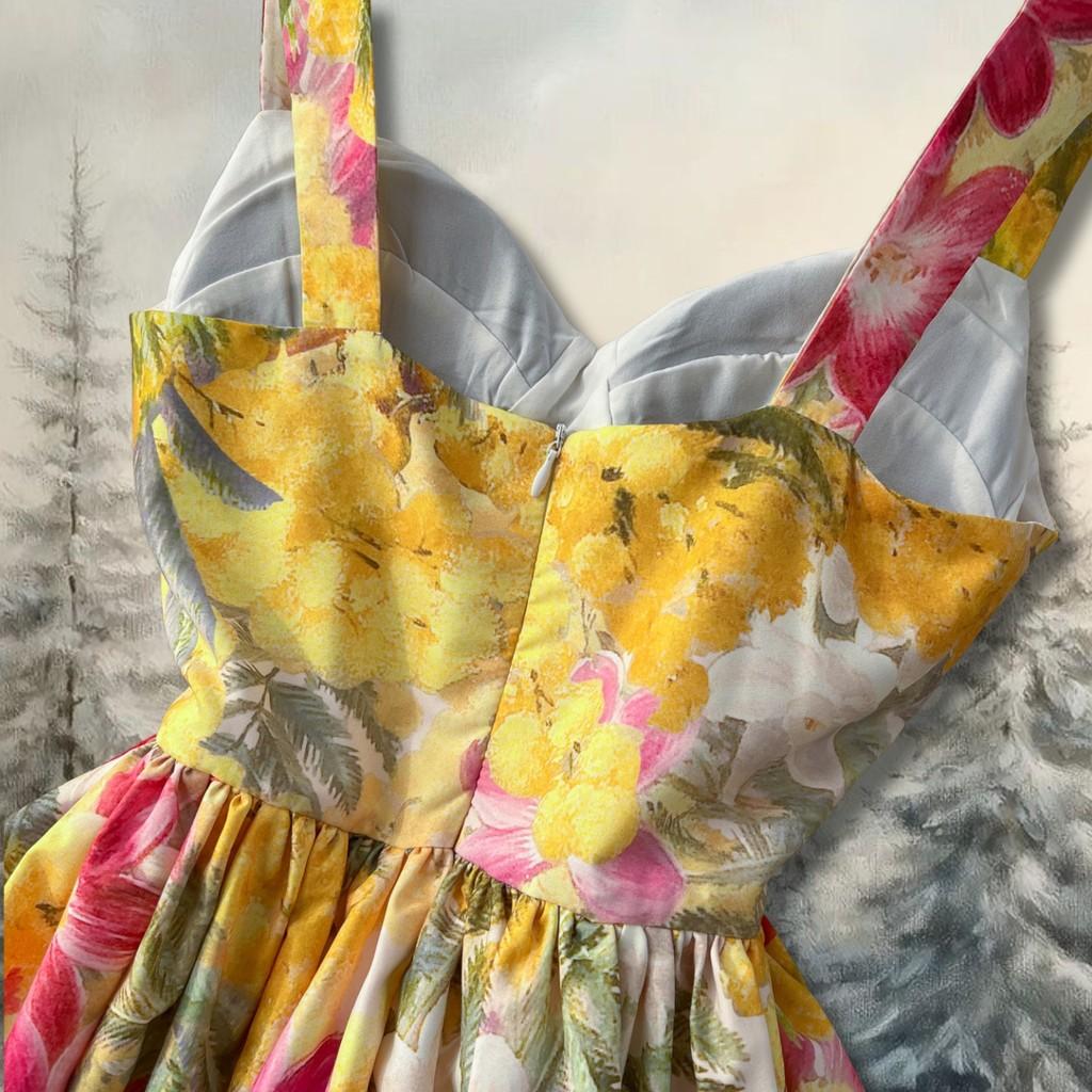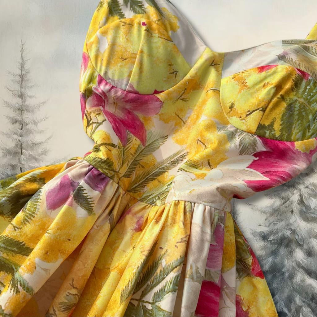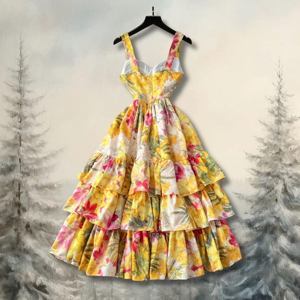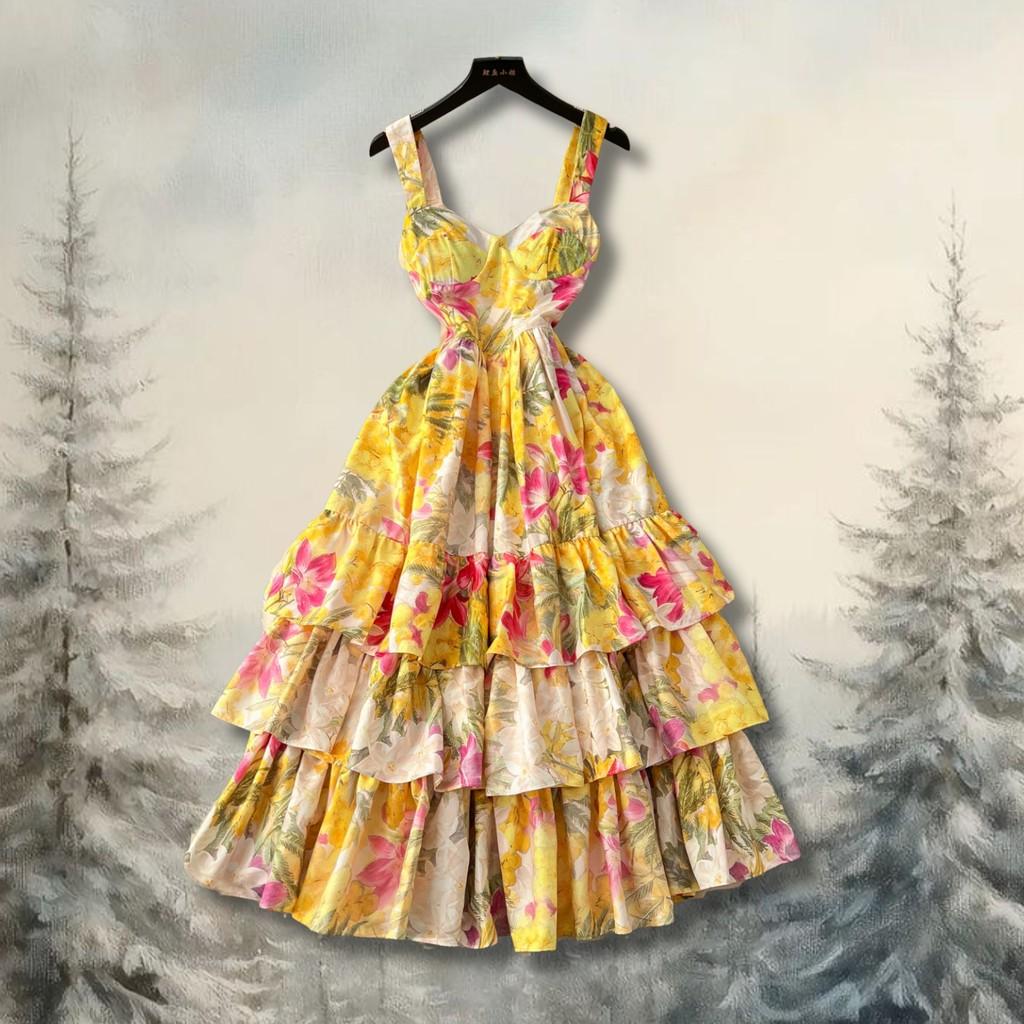 Aliciacouture - Mermiole Yellow Dress - Midi Floral Dress - Garden Party Summer Dress - Korean Style