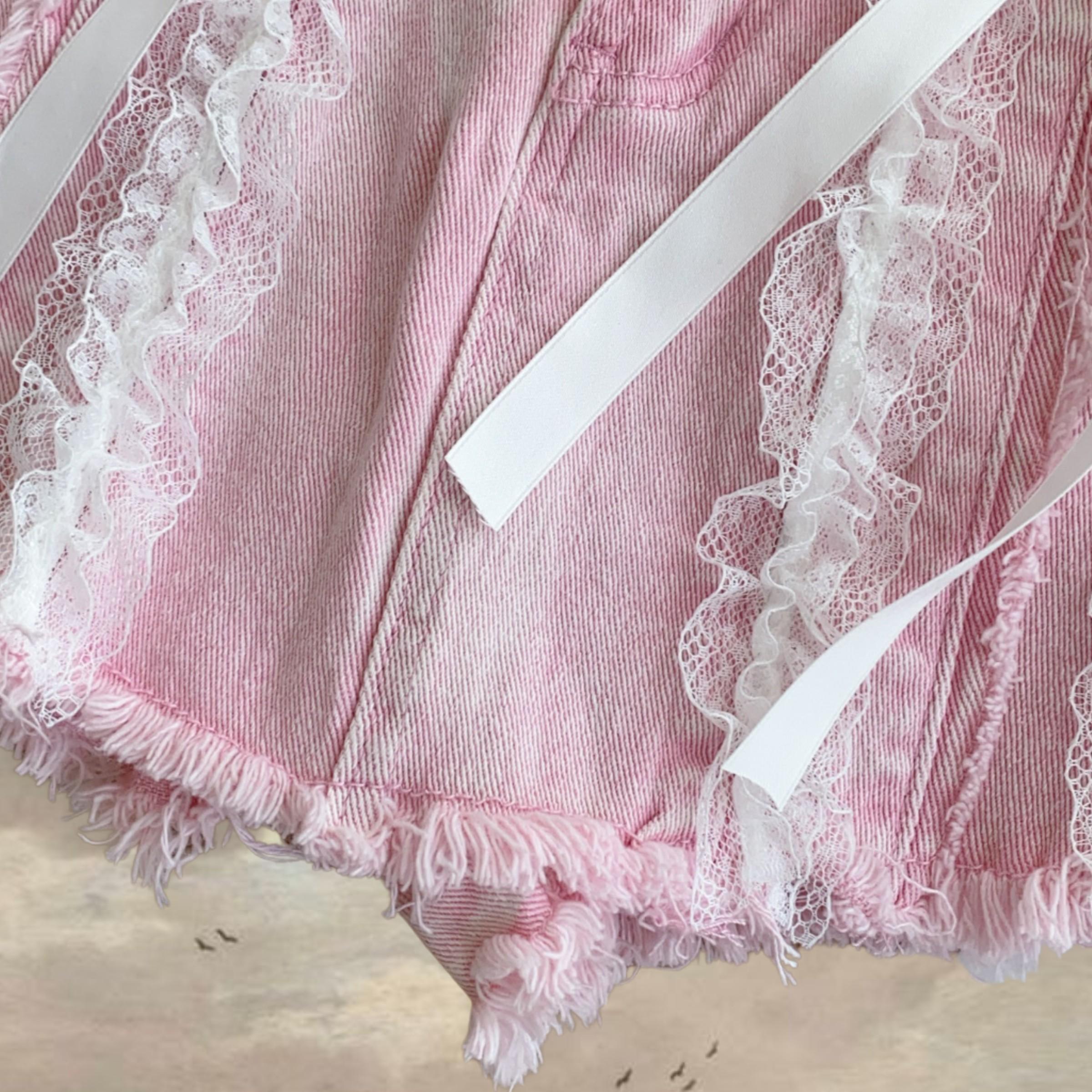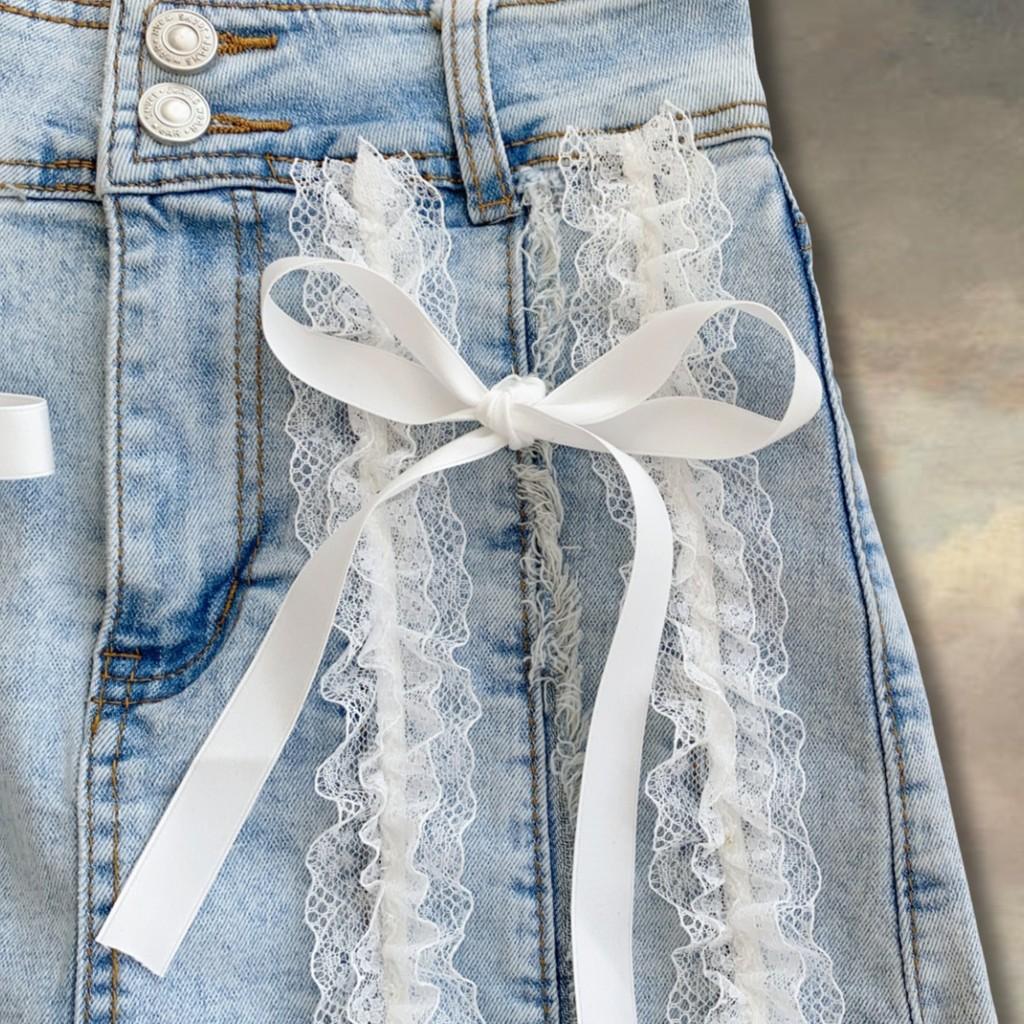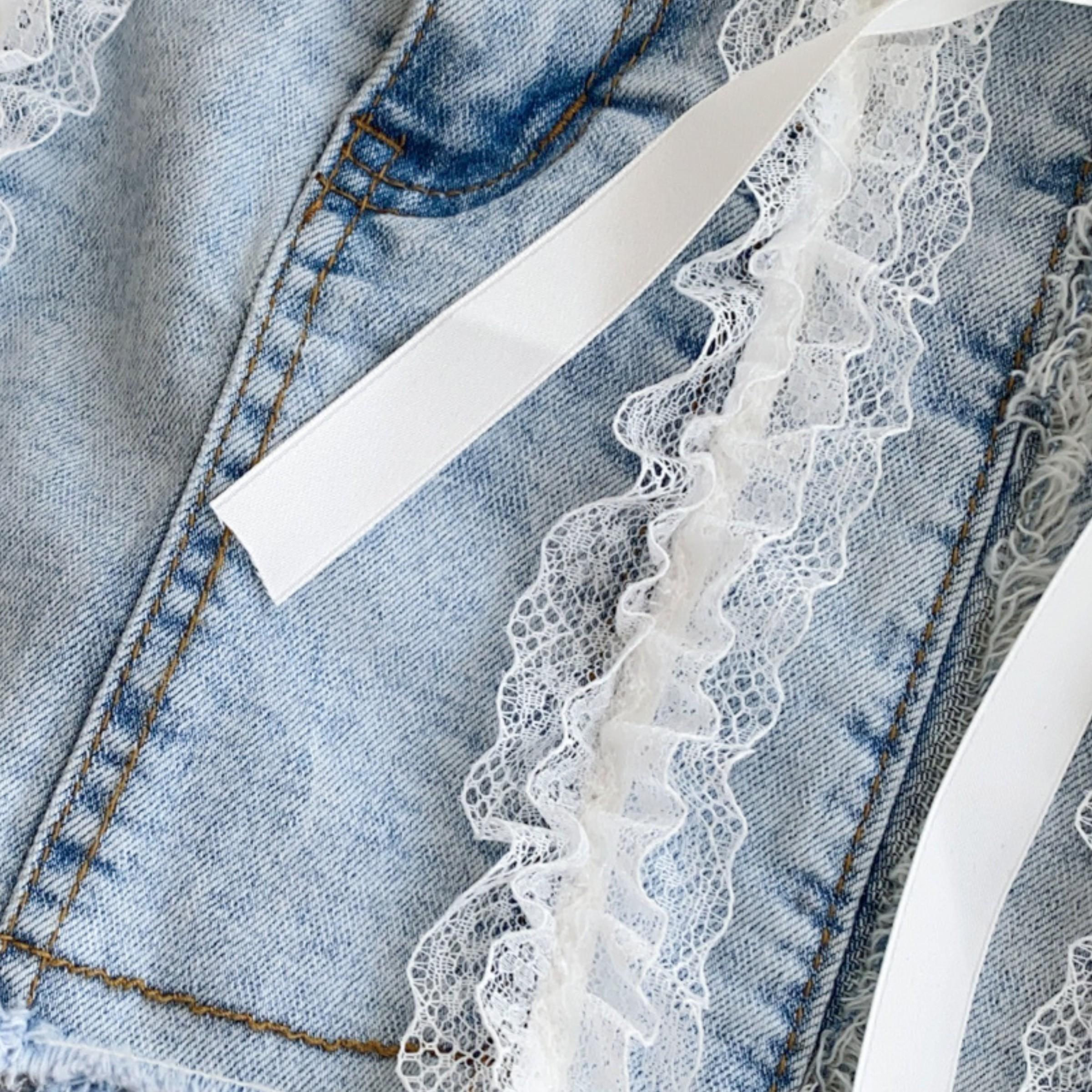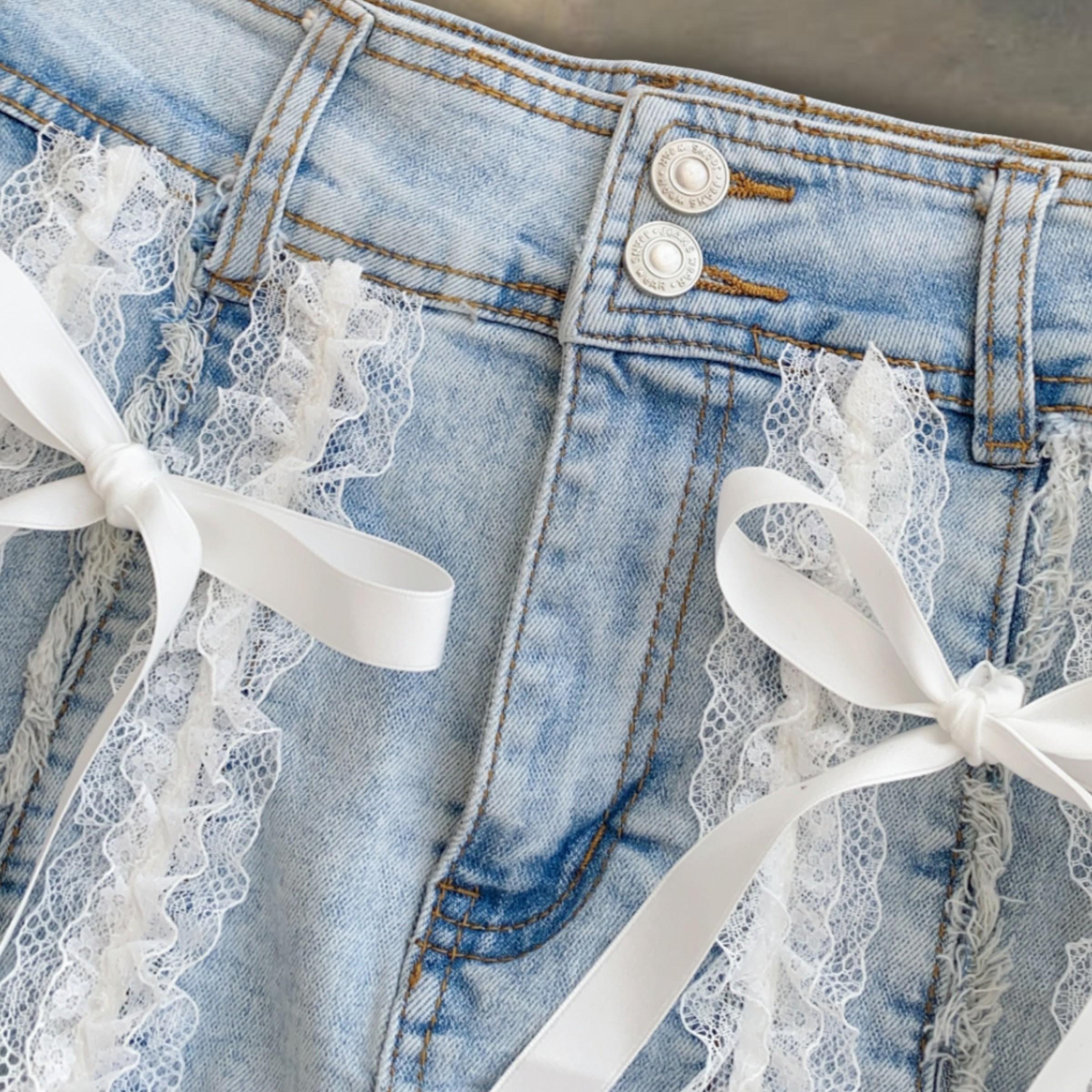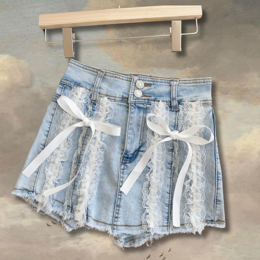 Aliciacouture - Tammy Denim Mini Skirt Pants - Lace Jeans Pants - Casual OOTD Daily Wear