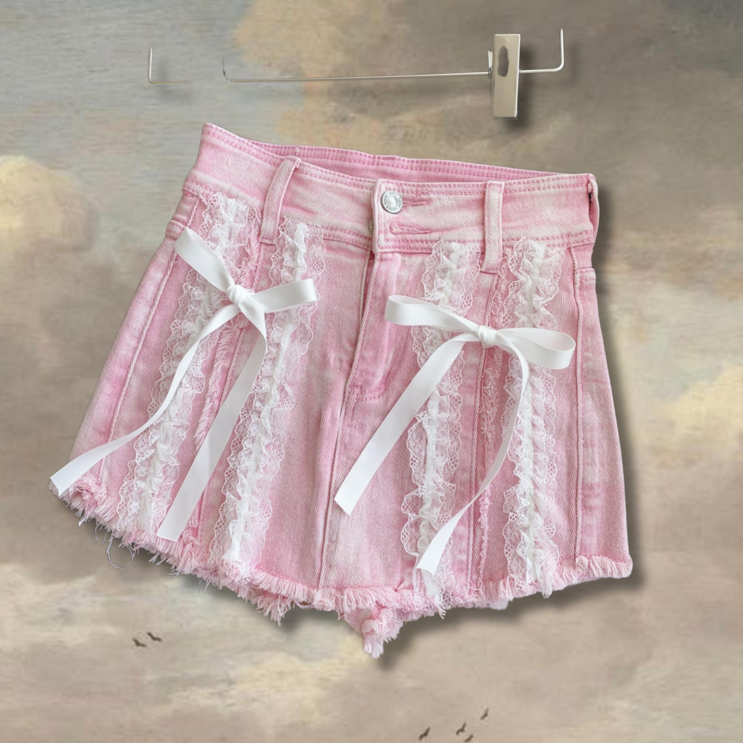 Buat look kamu makin girly tapi tetap edgy dengan Tammy Short! Celana pendek ini terbuat dari denim halus berkualitas yang nyaman dipakai seharian. Detail renda manis di bagian depan dipadu dengan aksen pita satin putih bikin tampilannya unik, cute, dan standout banget. Potongannya pas di badan dengan raw hem (tepi unfinished) yang memberi sentuhan kasual modern.
