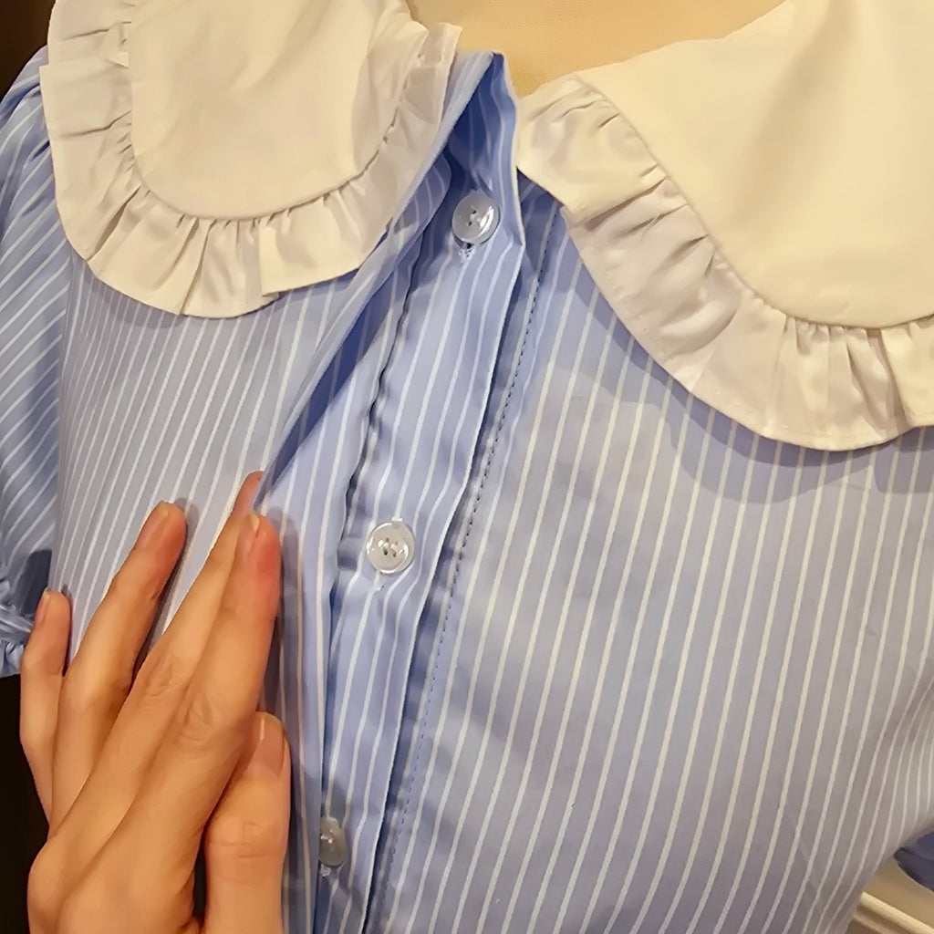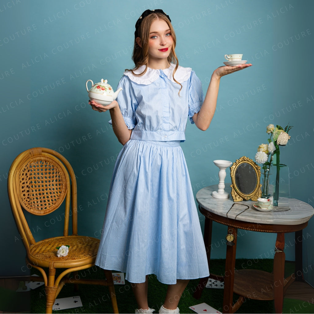 Alicia Couture - Yuika Yuka Oneset - Cotton Stripe Blouse and Skirt - Daily Wear Korean - Wonderland