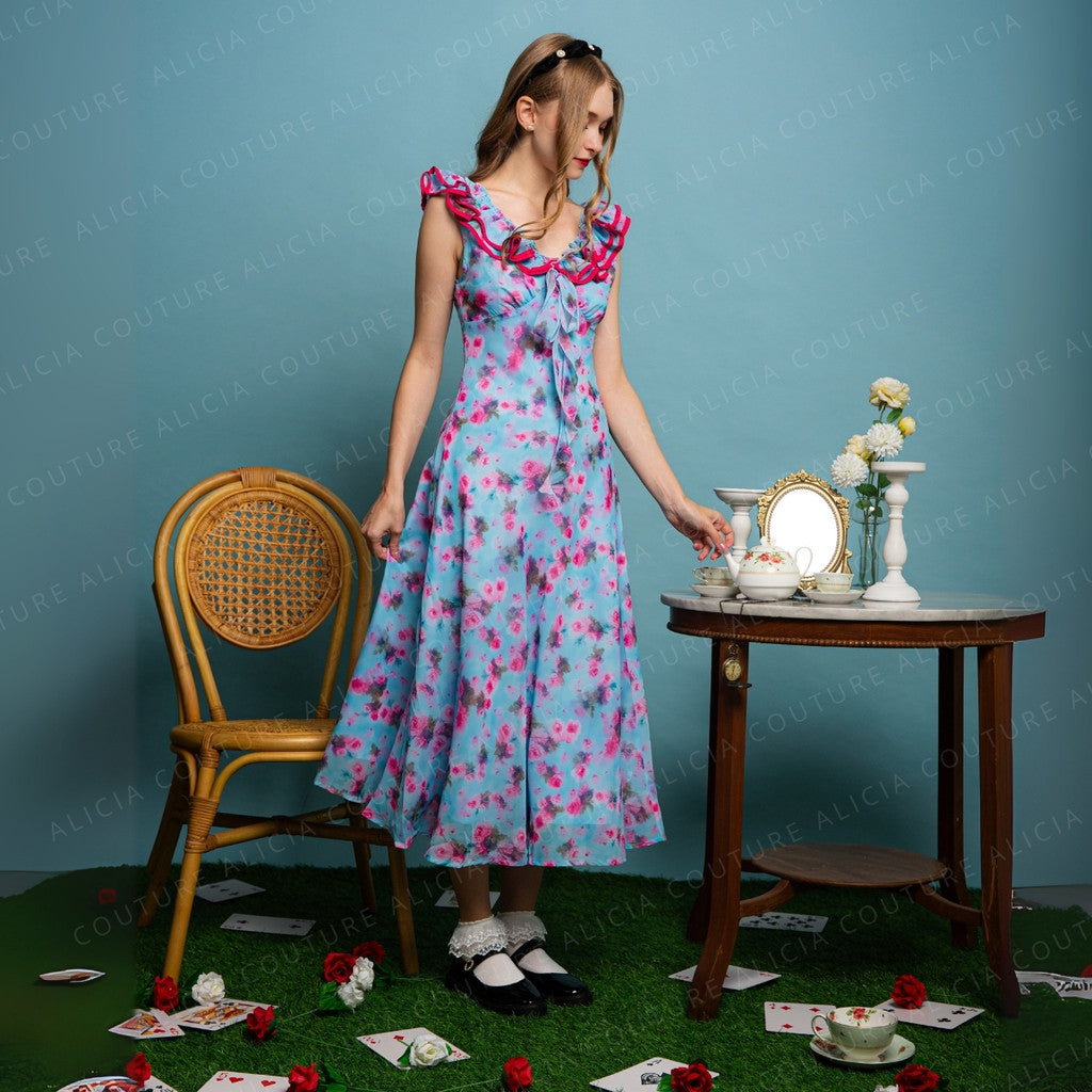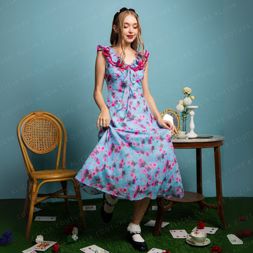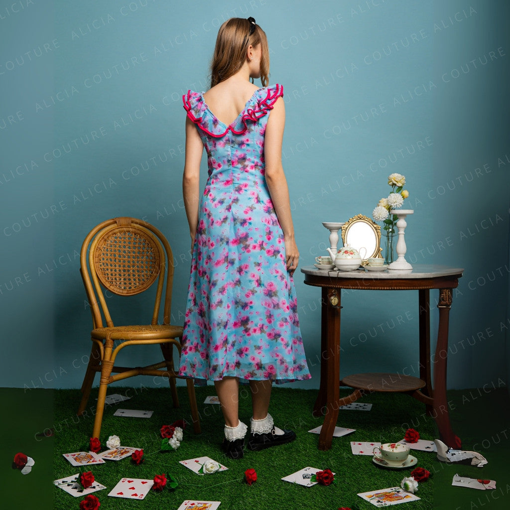 Aliciacouture - Suire Pink Flower Blue Dress - Wonderland Collection - Summer Dress - Daily Wear