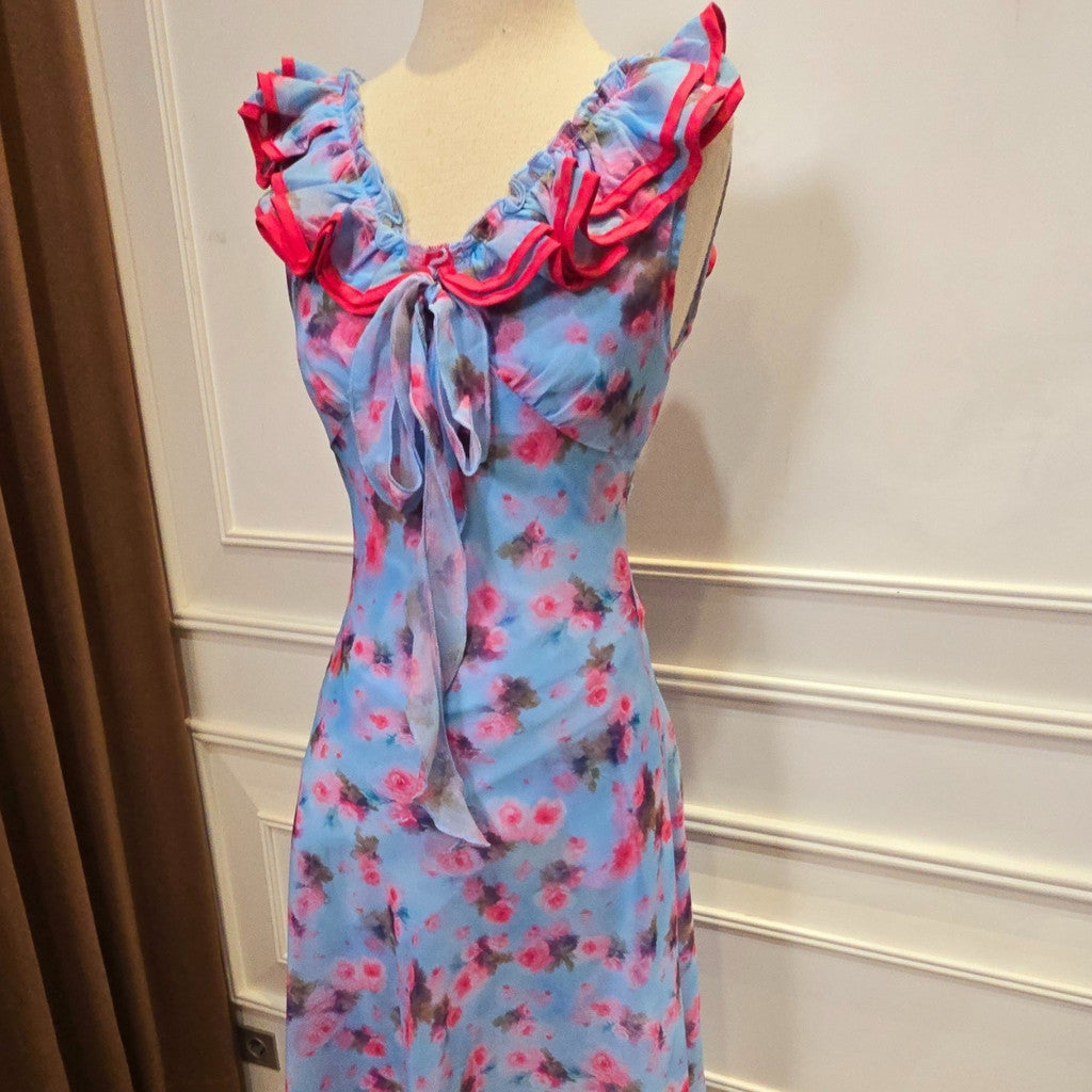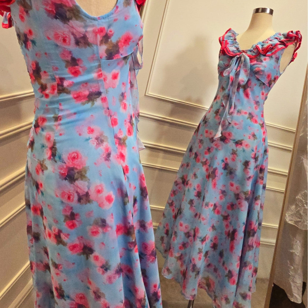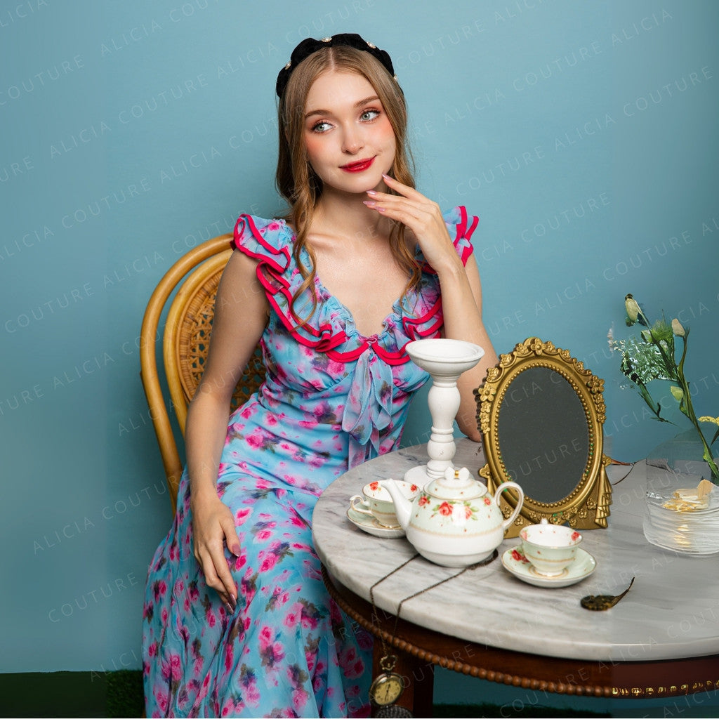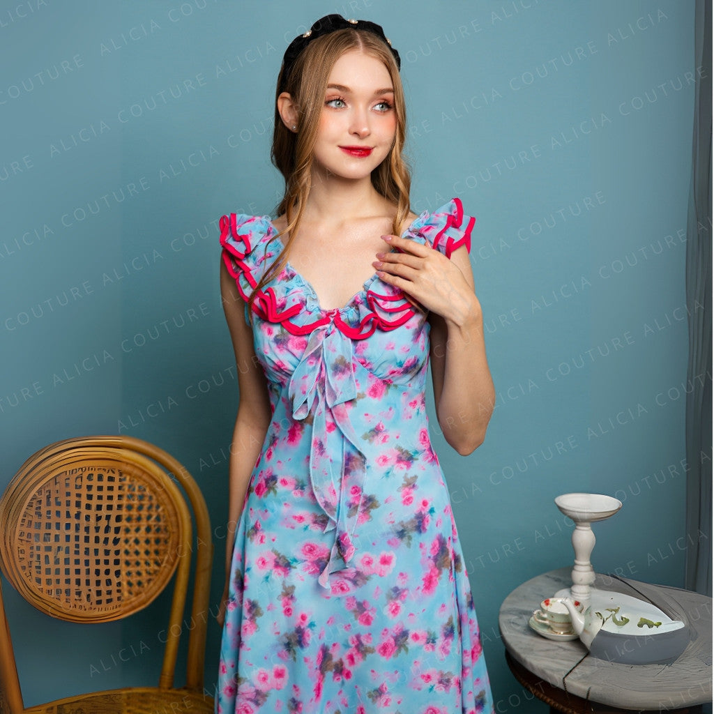 Aliciacouture - Suire Pink Flower Blue Dress - Wonderland Collection - Summer Dress - Daily Wear