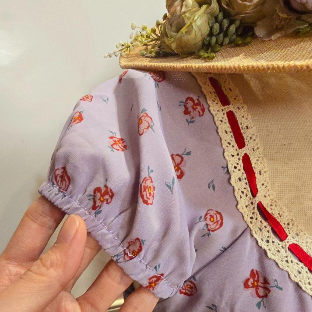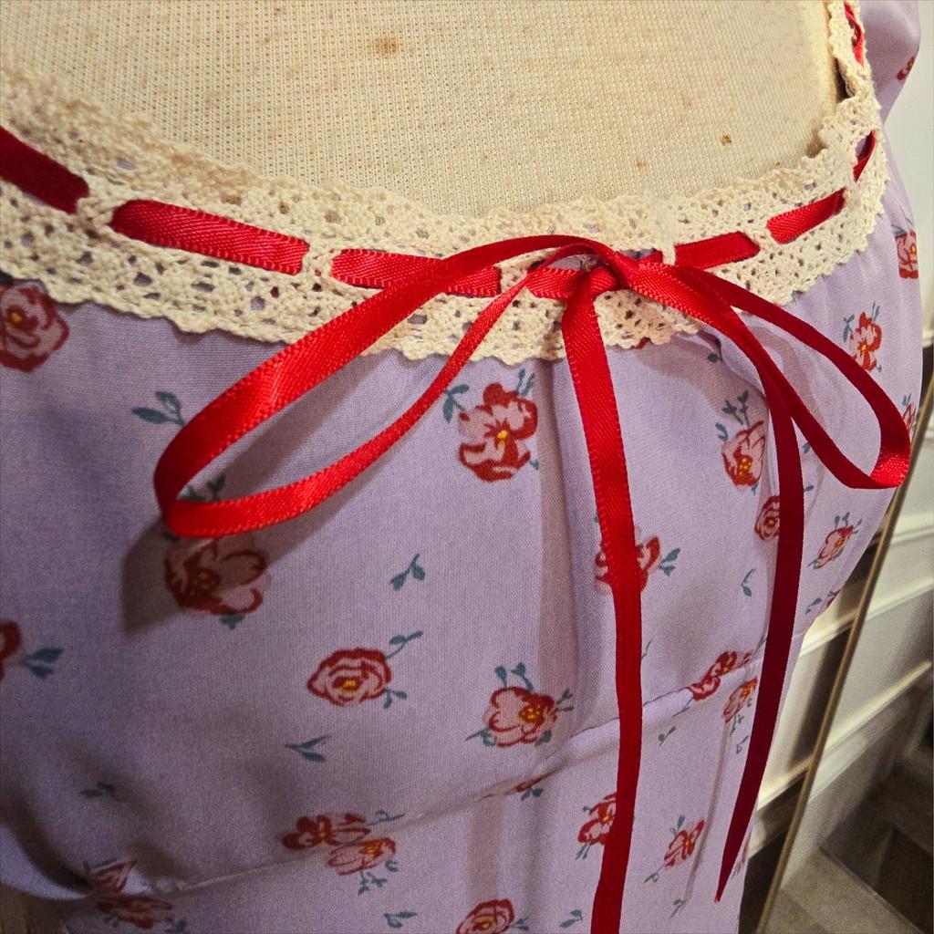 Violeta Dress siap bikin penampilan kamu makin girly dan effortless! Dress bermotif floral ini hadir dengan warna ungu lembut yang manis, dihiasi detail pita satin merah dan lace crochet di bagian leher. Model puff sleeves dan square neckline-nya bikin look kamu makin vintage dan feminin. Bahannya ringan dan flowy, nyaman banget dipakai seharian untuk hangout, brunch, atau sesi foto cantik!