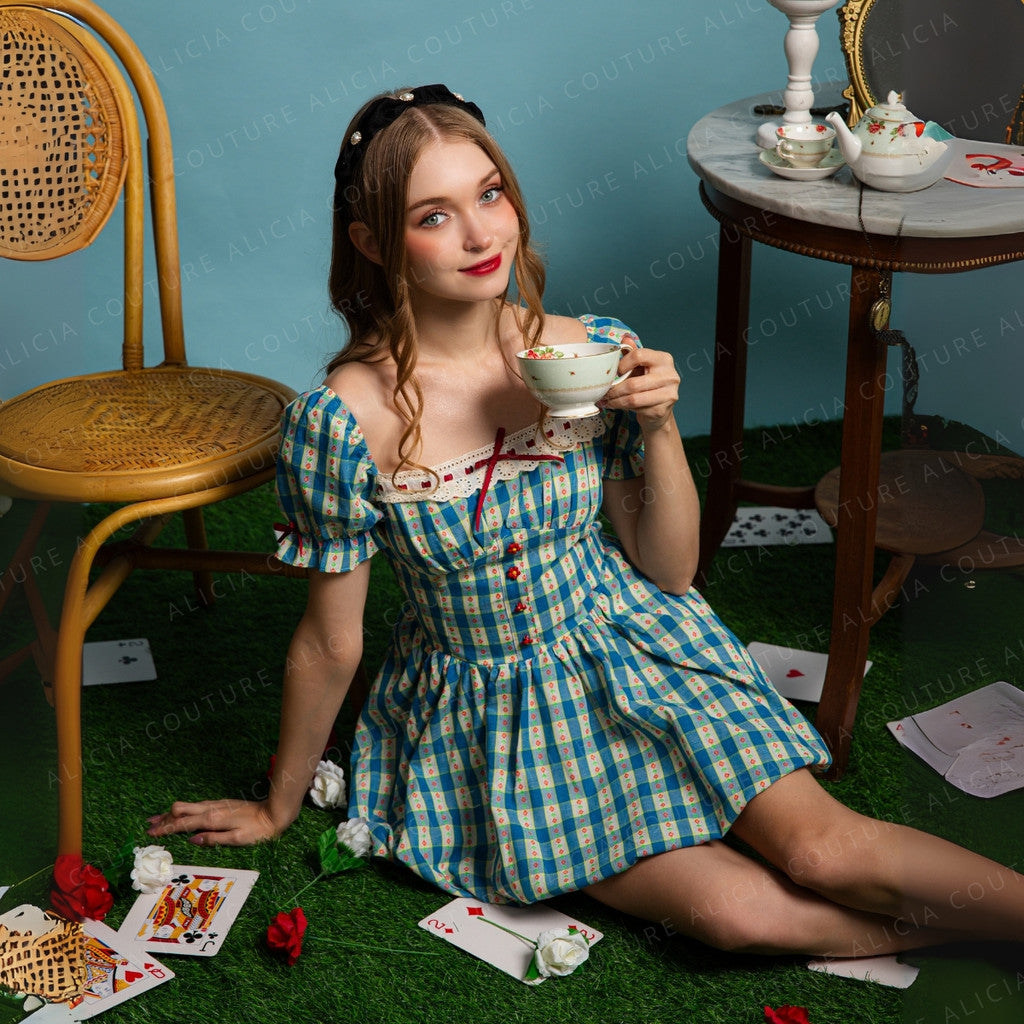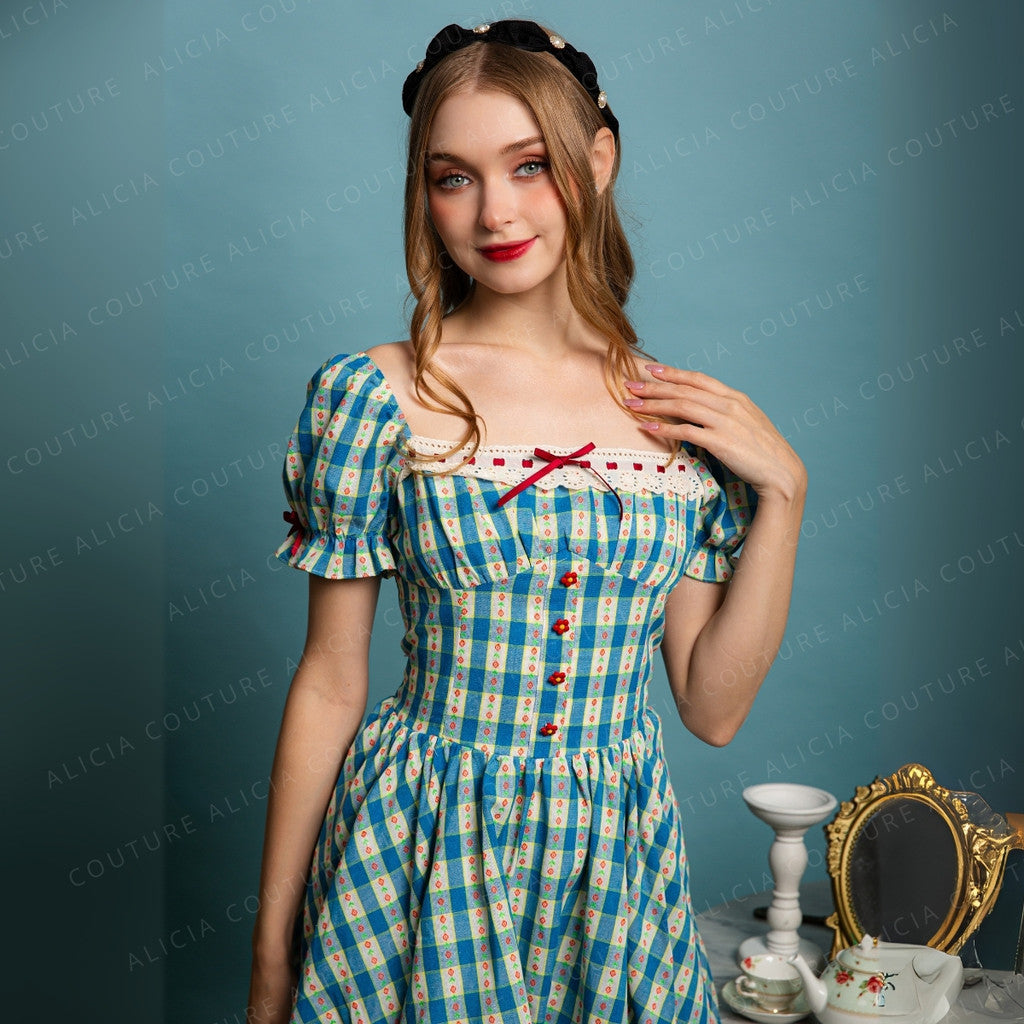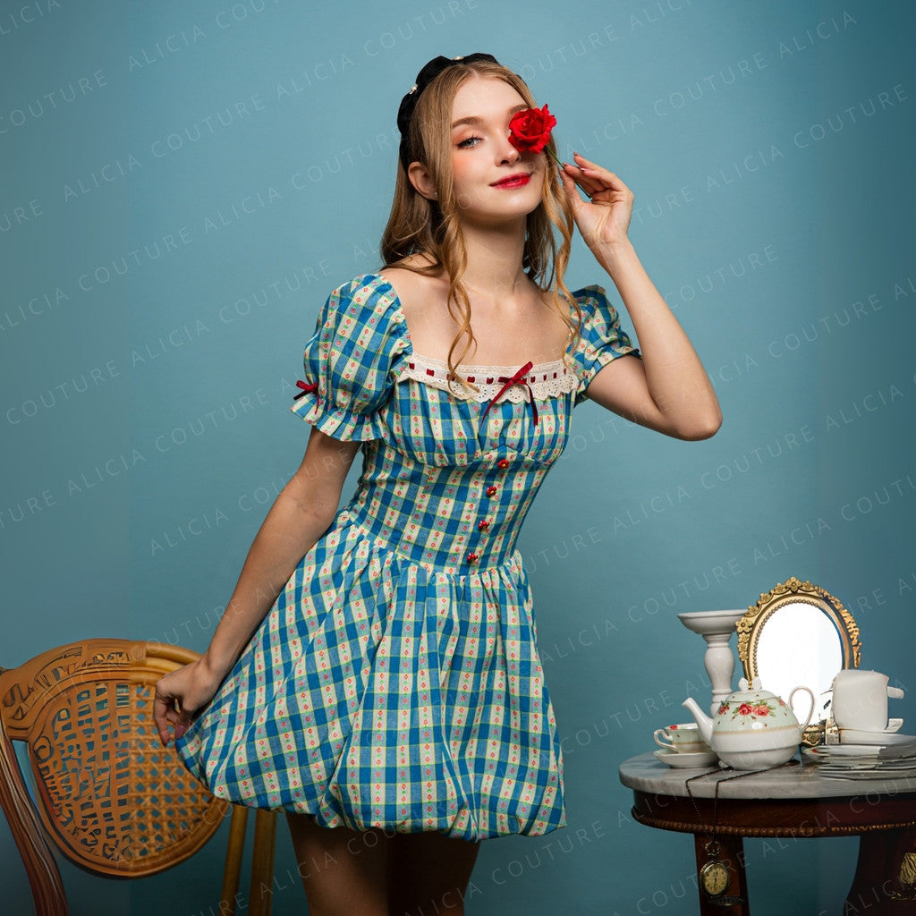 Aliciacouture - Wonderland Collection - Alina Dress - Gingham Floral Cotton Short Dress Korean style