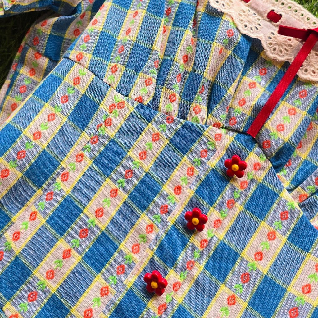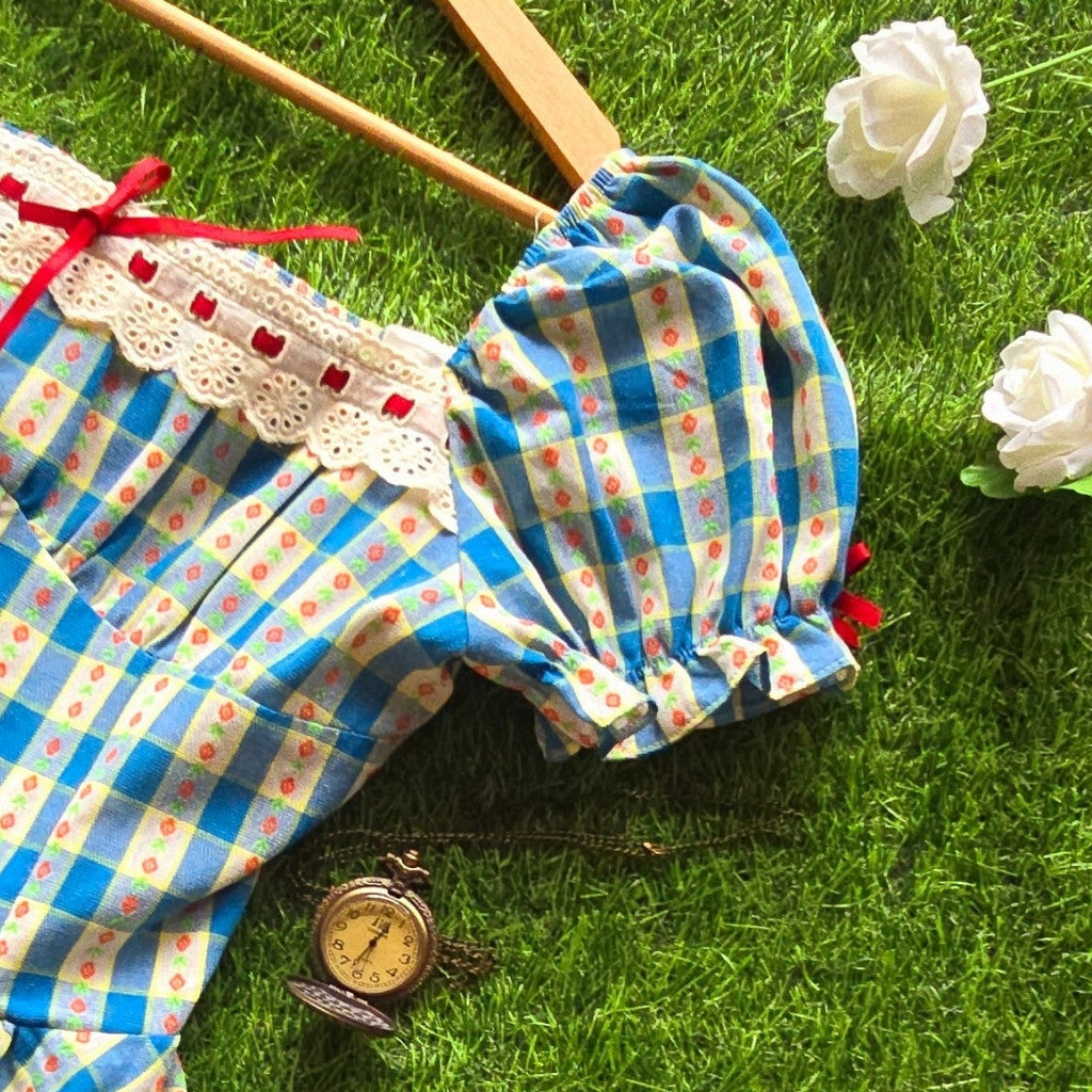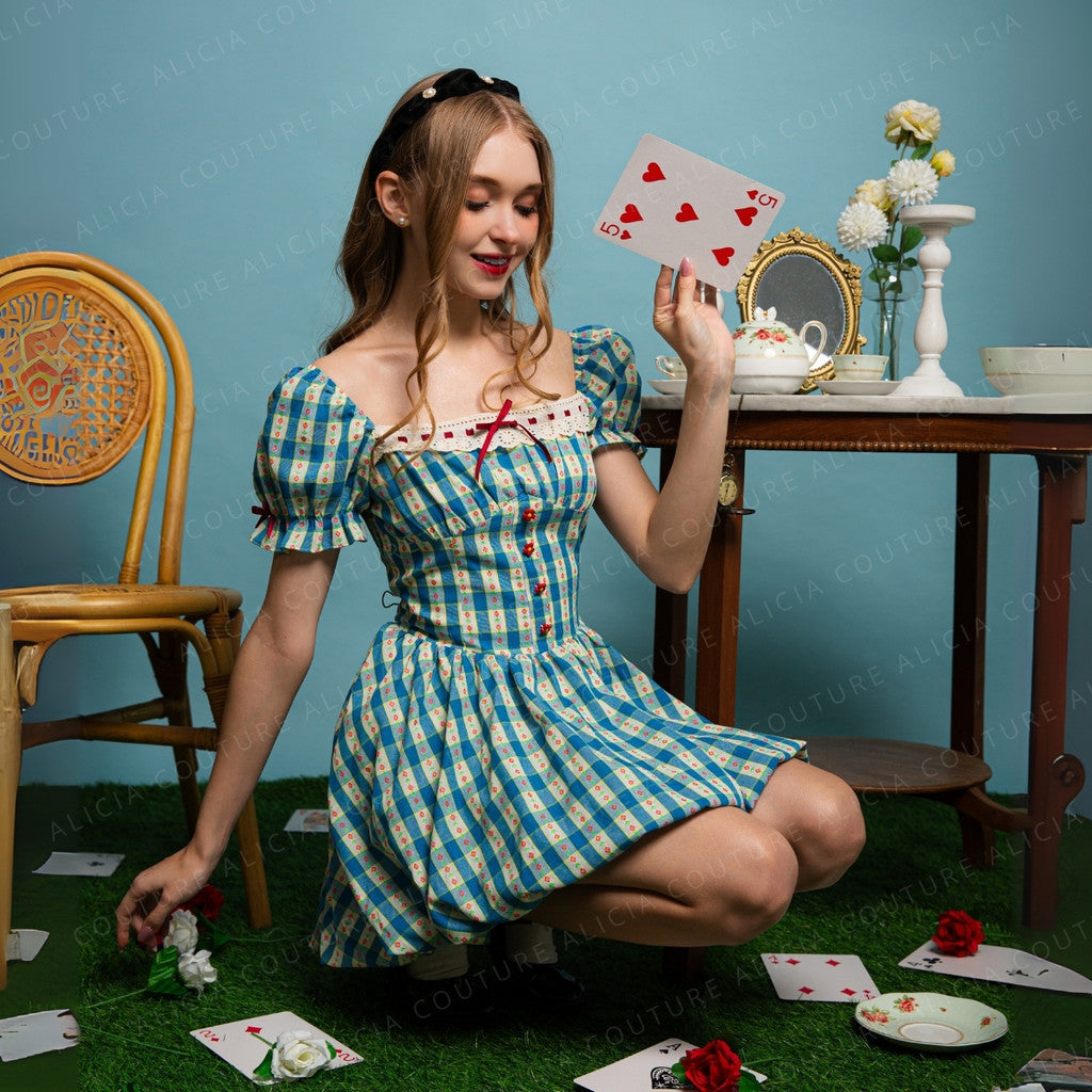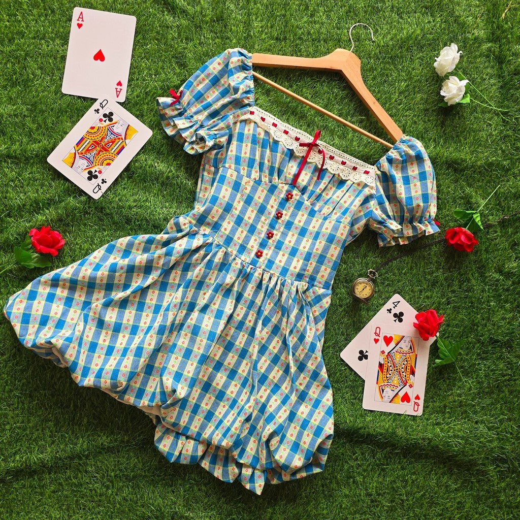 Aliciacouture - Wonderland Collection - Alina Dress - Gingham Floral Cotton Short Dress Korean style